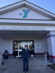 Charlie stands at the YMCA, where he swims often.
